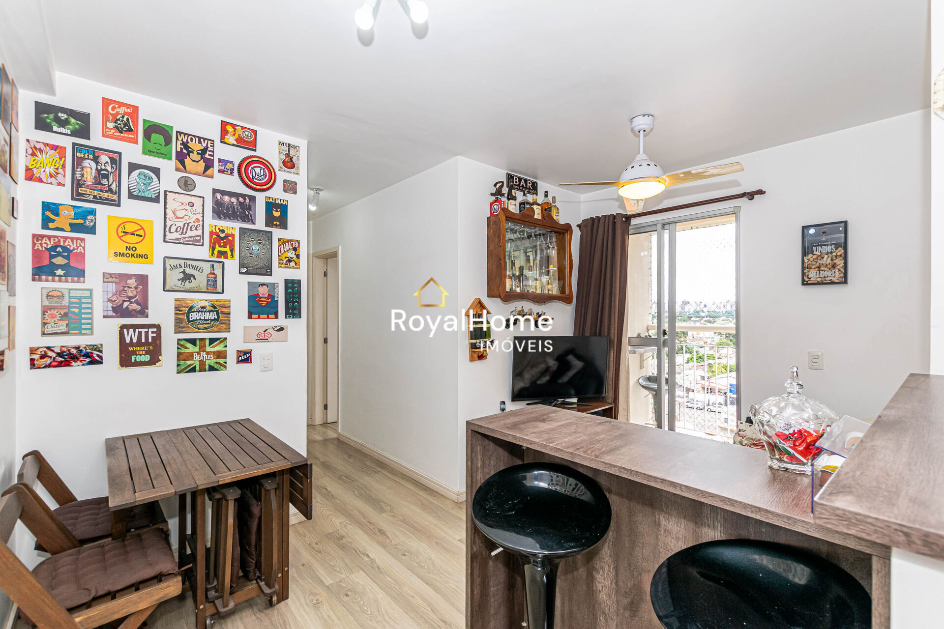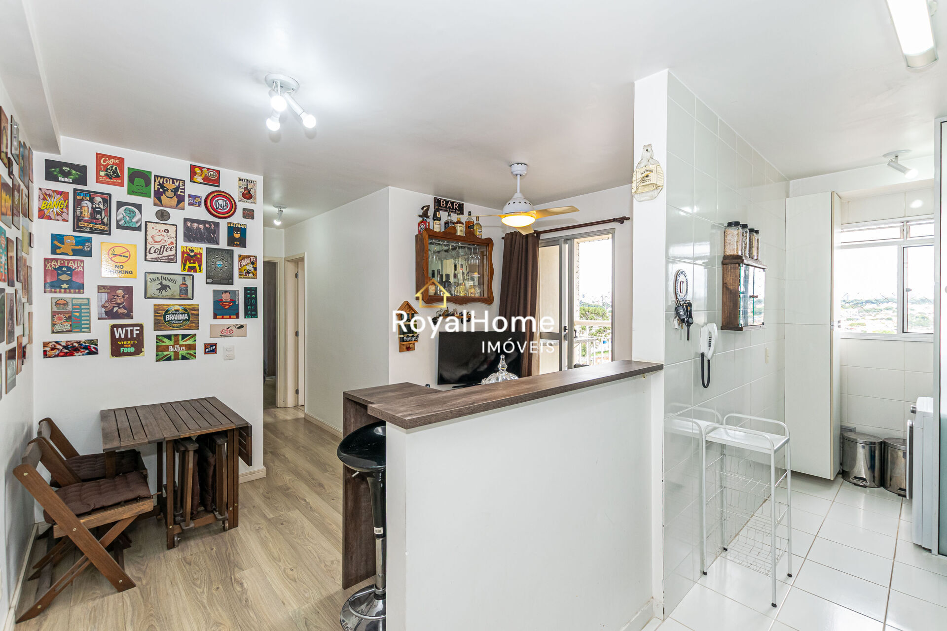 Living p/ 02 ambientes estar/jantar, cozinha integrada, área de serviço, sacada c/ churrasqueira, 02 dormitórios (sendo 01 suíte) e banheiro social e 01 vaga de garagem.